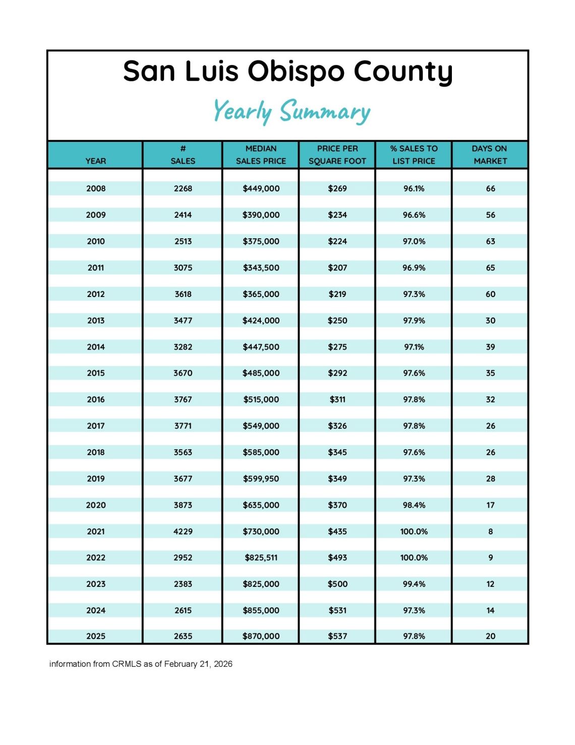 The 2025 San Luis Obispo County housing market tells a story of long-term appreciation, measured, sustainable growth, increased market sophistication, and continued lifestyle-driven demand.