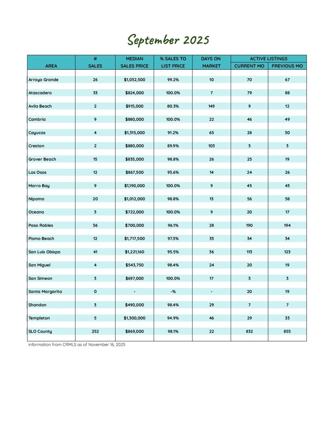 San Luis Obispo County September 2025 Market Update